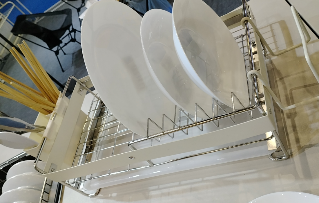 سریهای ذخیرهسازی آشپزخانه: قفسه خشک کن قابل افزایش از جنس استیل ضد زنگ بود که برای عملکرد بهینه و کارایی فضا طراحی شده بود. این سری همچنین شامل قفسه های دیواری چند منظوره و نگهدارنده چاقوهای مغناطیسی است که همگی با زیبایی شناسی مینیمالیستی ایده آل برای آشپزخانه های مدرن جمع و جور ساخته شده اند.