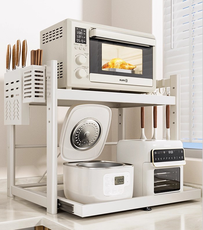 برای آشپزخانههای متوسط تا بزرگ: سازماندهندگان بزرگتر (مانند سیستمهای کابینت بیرونکش، سینیهای ظروف چند طبقه، یا قفسههای ابزار نصبشده روی دیوار) میتوانند موارد بیشتری را بدون ایجاد شلوغی اداره کنند. آنها مخصوصاً در صورت داشتن مجموعه گسترده ای از ابزارها یا ادویه ها مفید هستند، زیرا از ازدحام بیش از حد در کابینت های استاندارد جلوگیری می کنند.